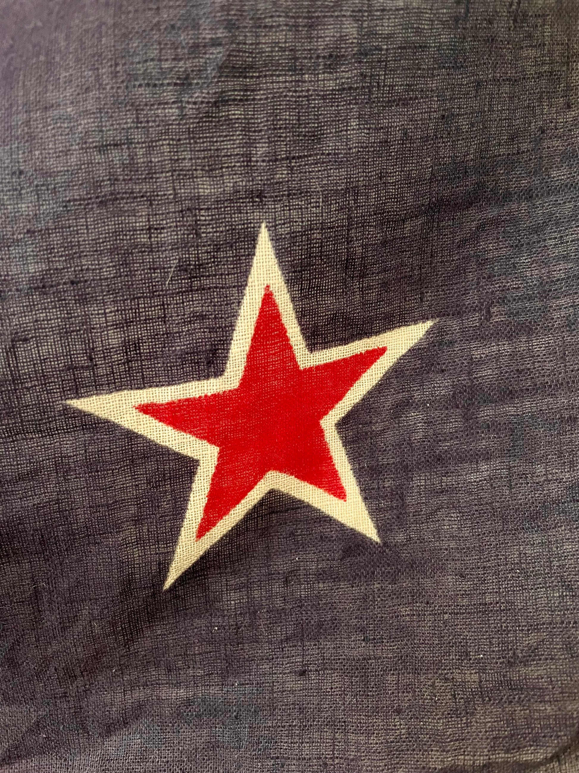 The flag is printed cotton and measures approx. 17x33.5 inches. Such a lovely piece of history with the perfect amount of wear and patina that makes for great display.