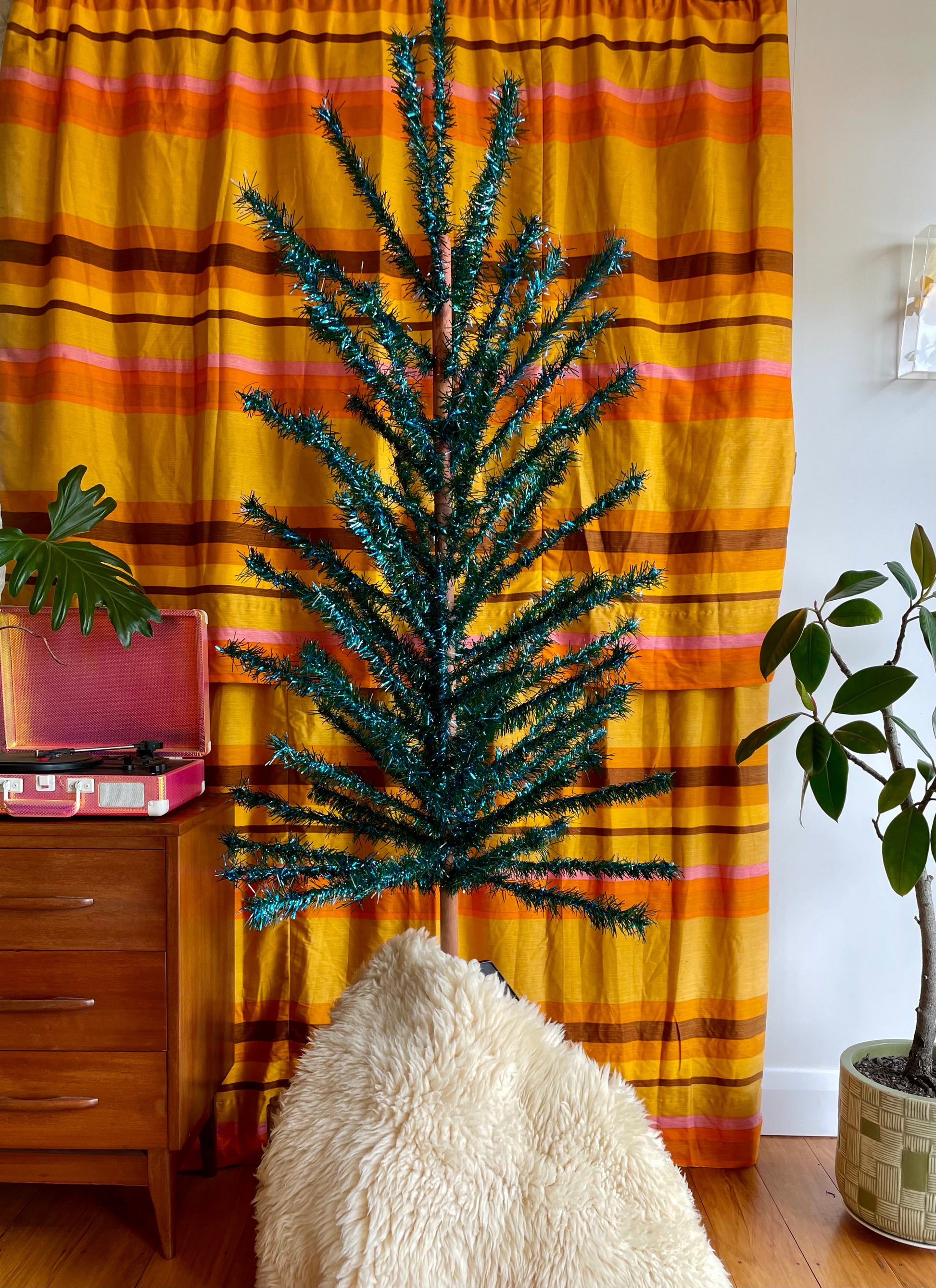 Bourbon Street - Retro blue and green faux Christmas tree - midcentury modern sparkly Xmas tree