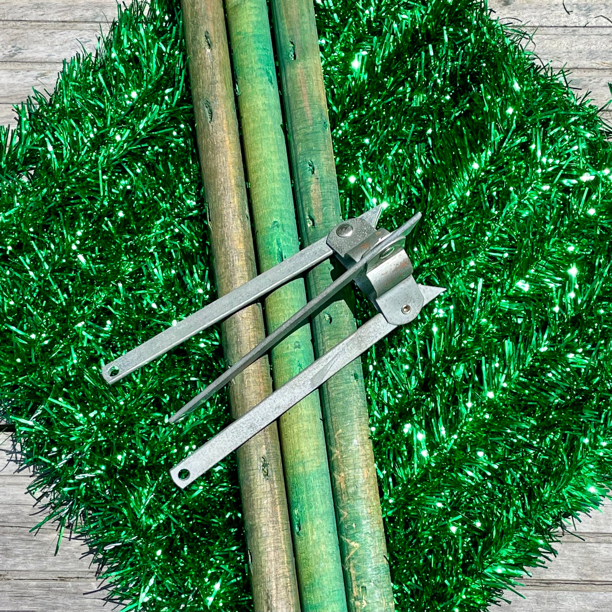 Some of the branches may be snug or slightly loose in the wooden holes, but they all fit! Branches can me molded into the positions desired. Some may be slightly crooked, but can be bent back if needed. Some branches might have the tinsel slightly smushed in patches. Tinsel bits to be expected at the bottom of the box. Tree trunk may lean slightly at first, but the center poles can be rotated until it balances. The wooden poles fit together, but you may have to twist the dowels in if it’s a snug fit. Please note this is vintage tinsel, not aluminum metal (the stand is aluminum).