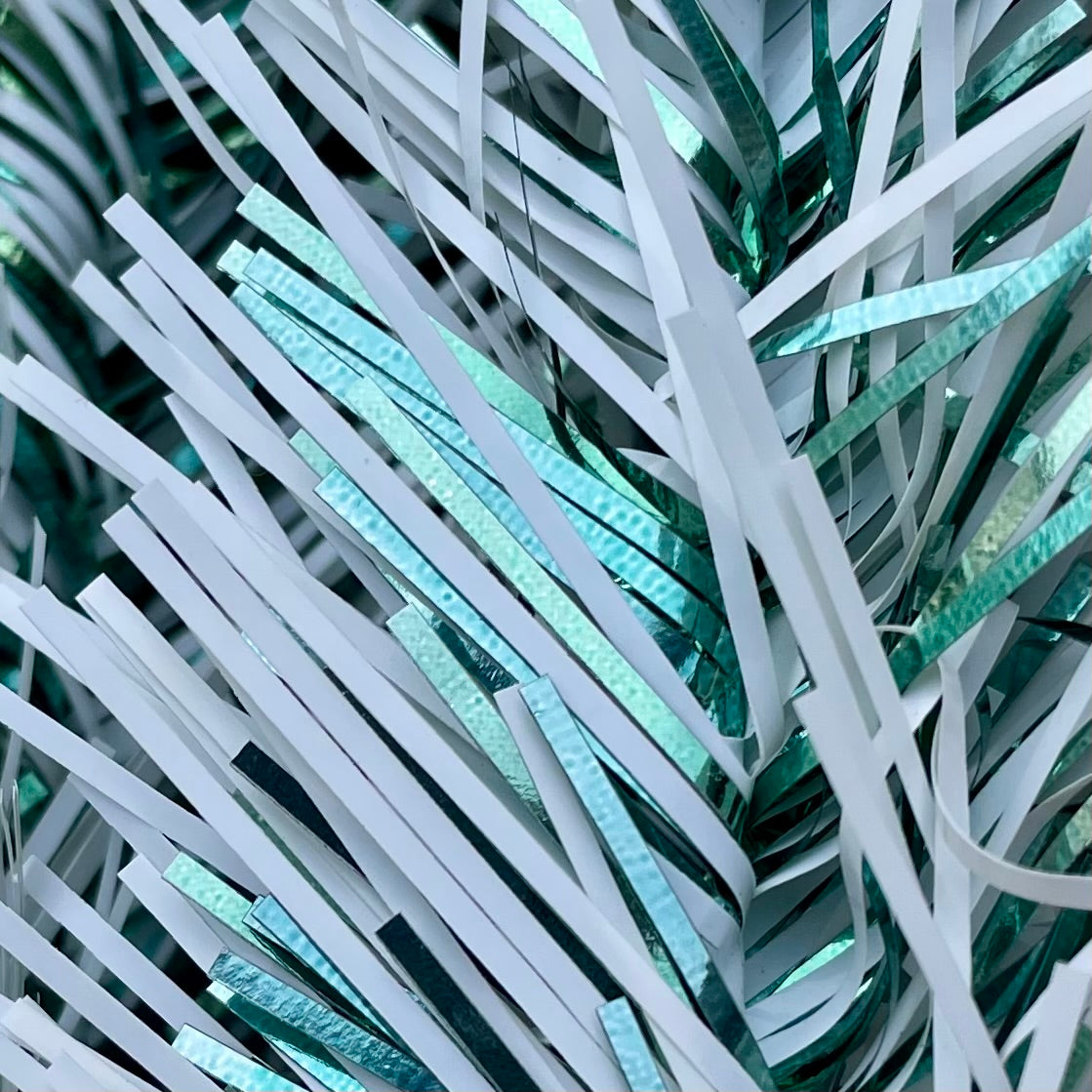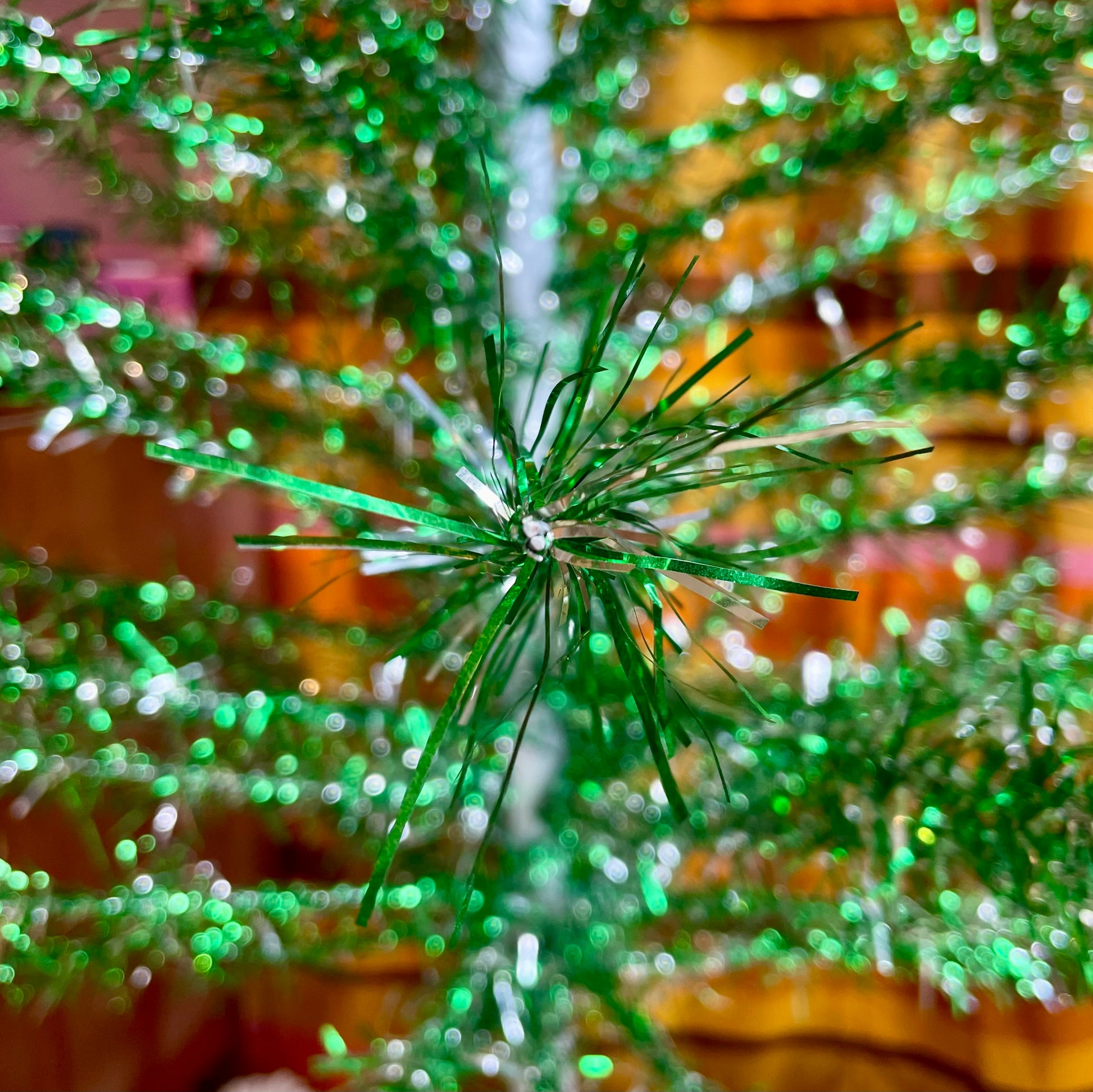 This tree was “shedding” tinsel a bit more than usual when I was assembling it. The branches are also a bit more sparse than some of my other trees. However, what it lacks in immaculate condition it makes up for with how sparkly and shiny it is!