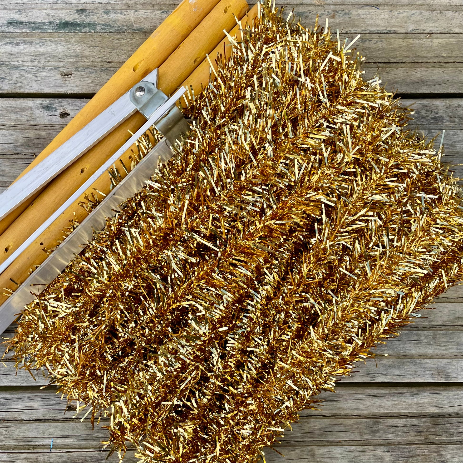 Rare, extra large vintage tinsel Christmas tree in a warm, sparkly gold! The tree is from New Zealand and is possibly from the N.Z. tinsel limited company.