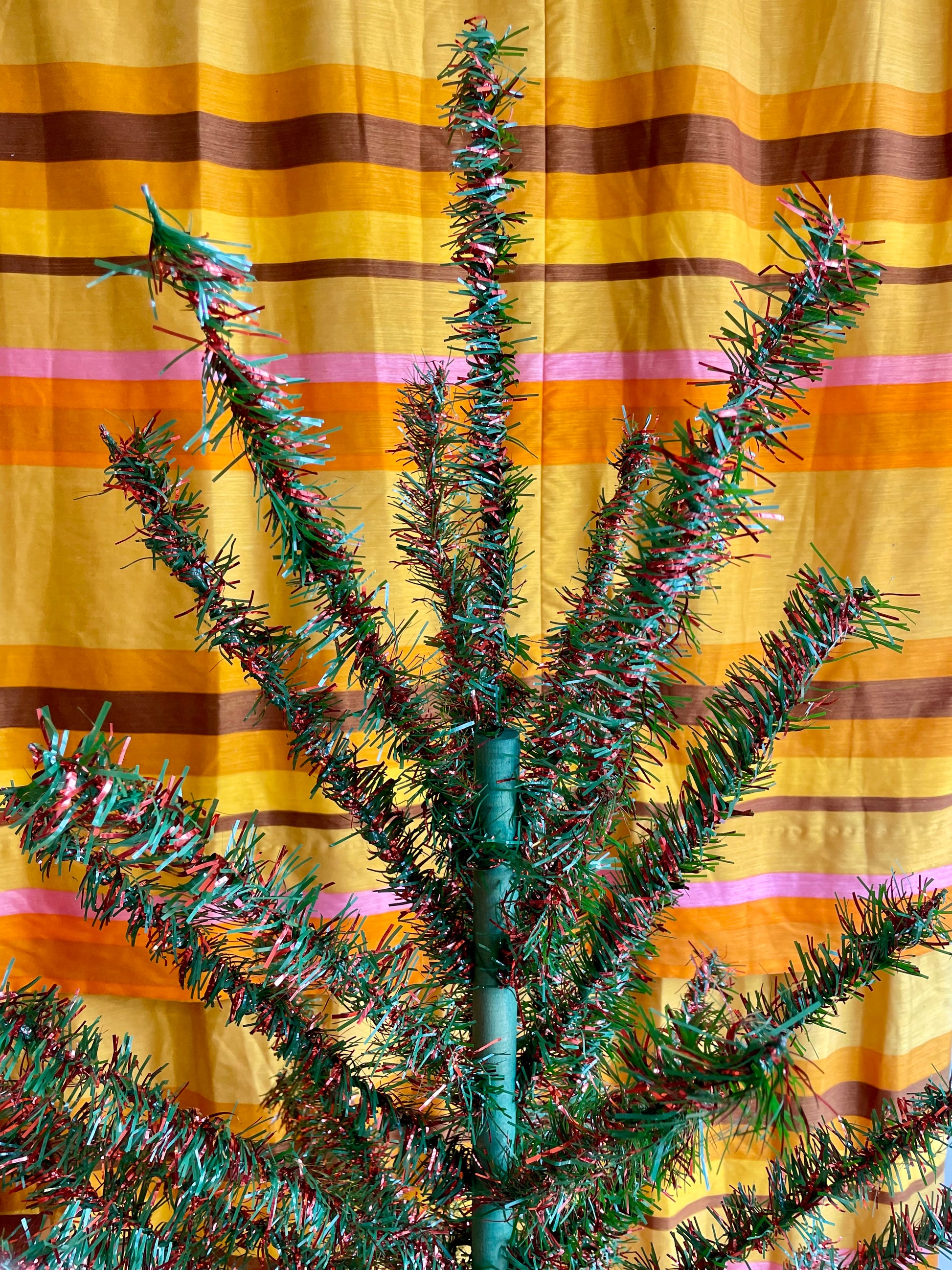 Red and green vintage 4 foot Christmas tree - midcentury modern tinsel xmas tree