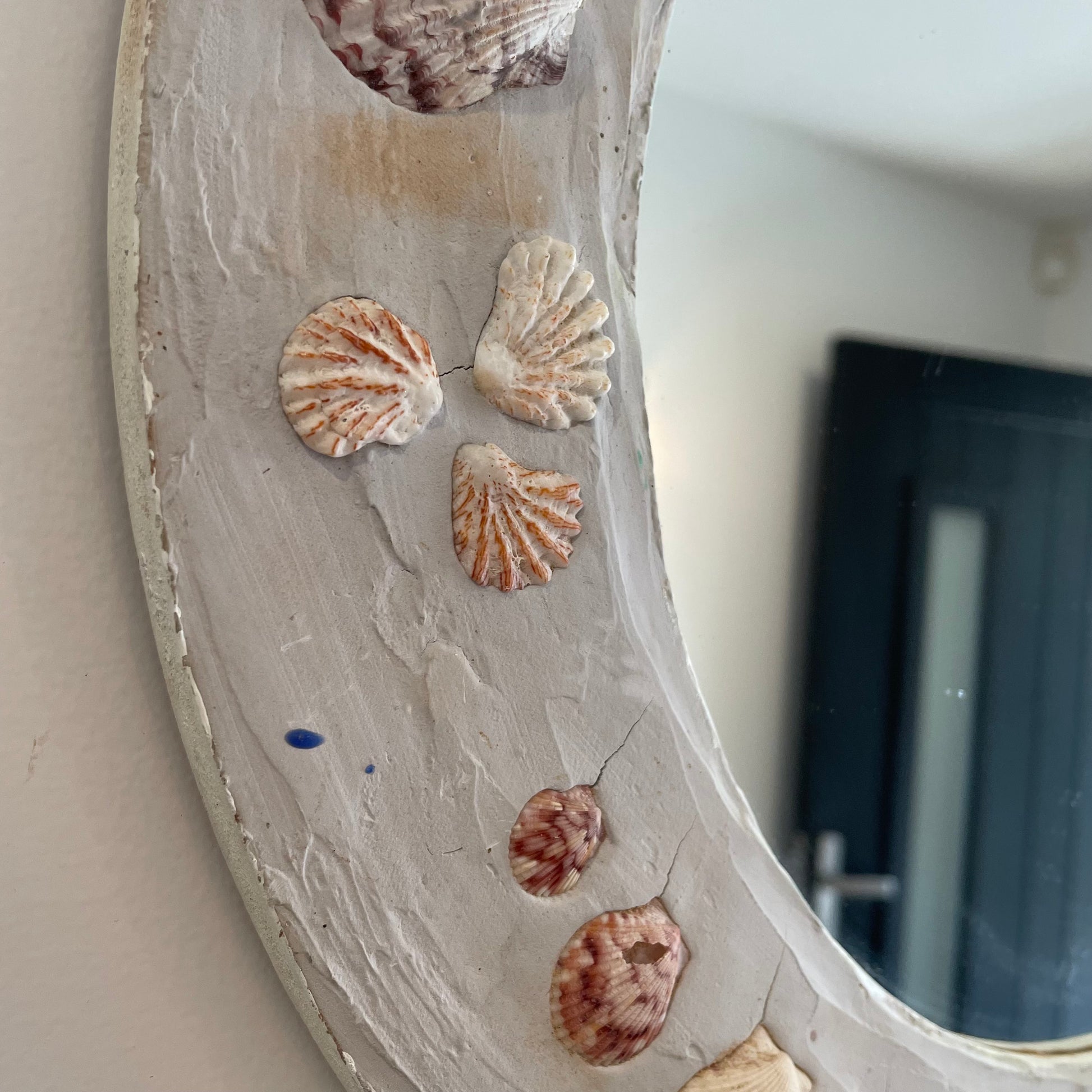 Beautiful & fun shell-covered round mirror. Most likely hand-made with shells from our lovely New Zealand beaches. One of a kind.