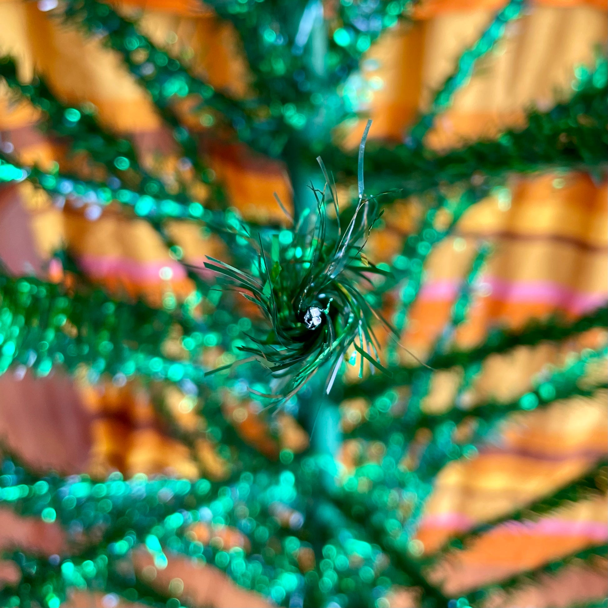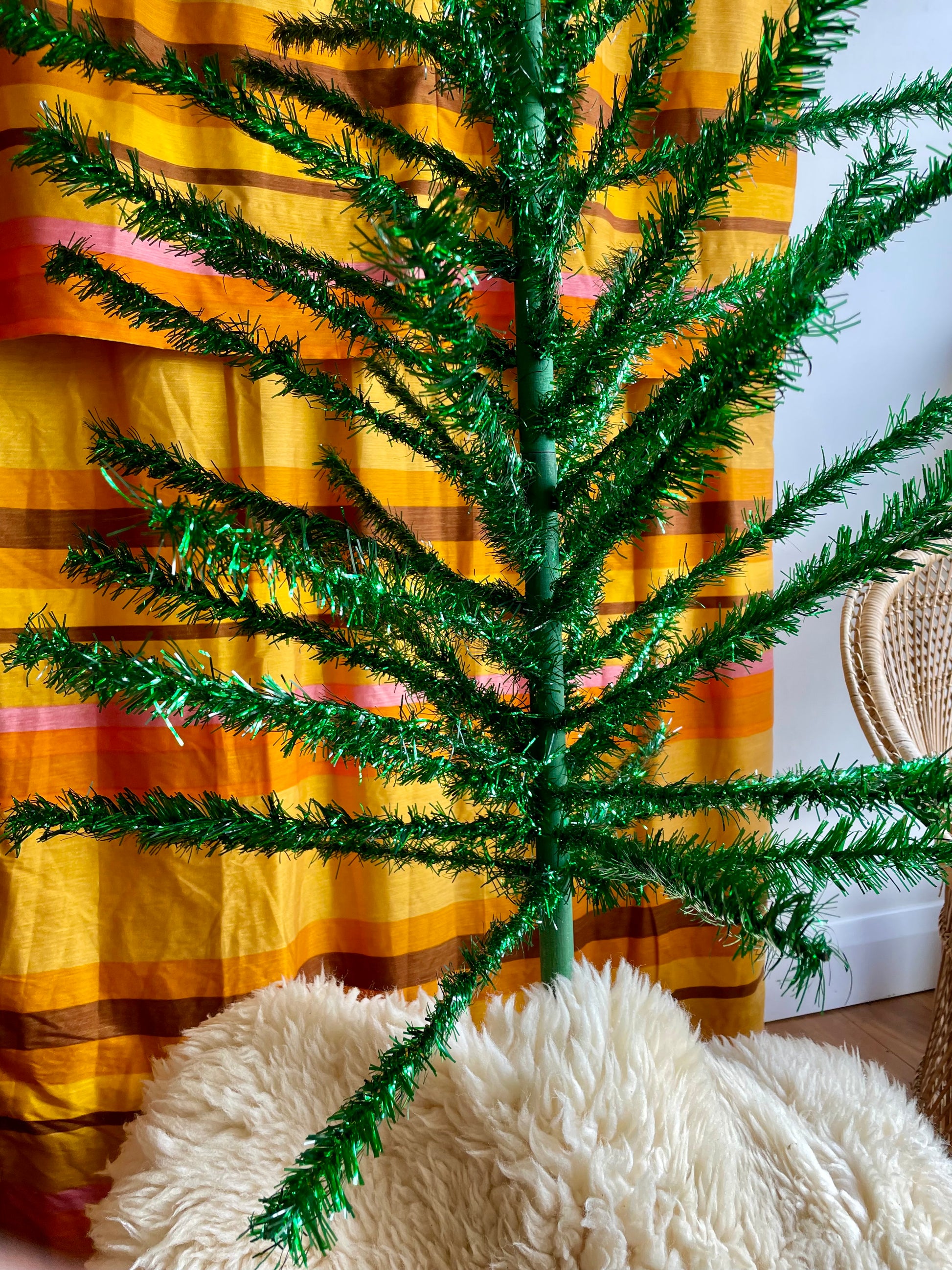 Shiny green vintage Christmas tree - 6 foot midcentury modern aluminum Xmas tree