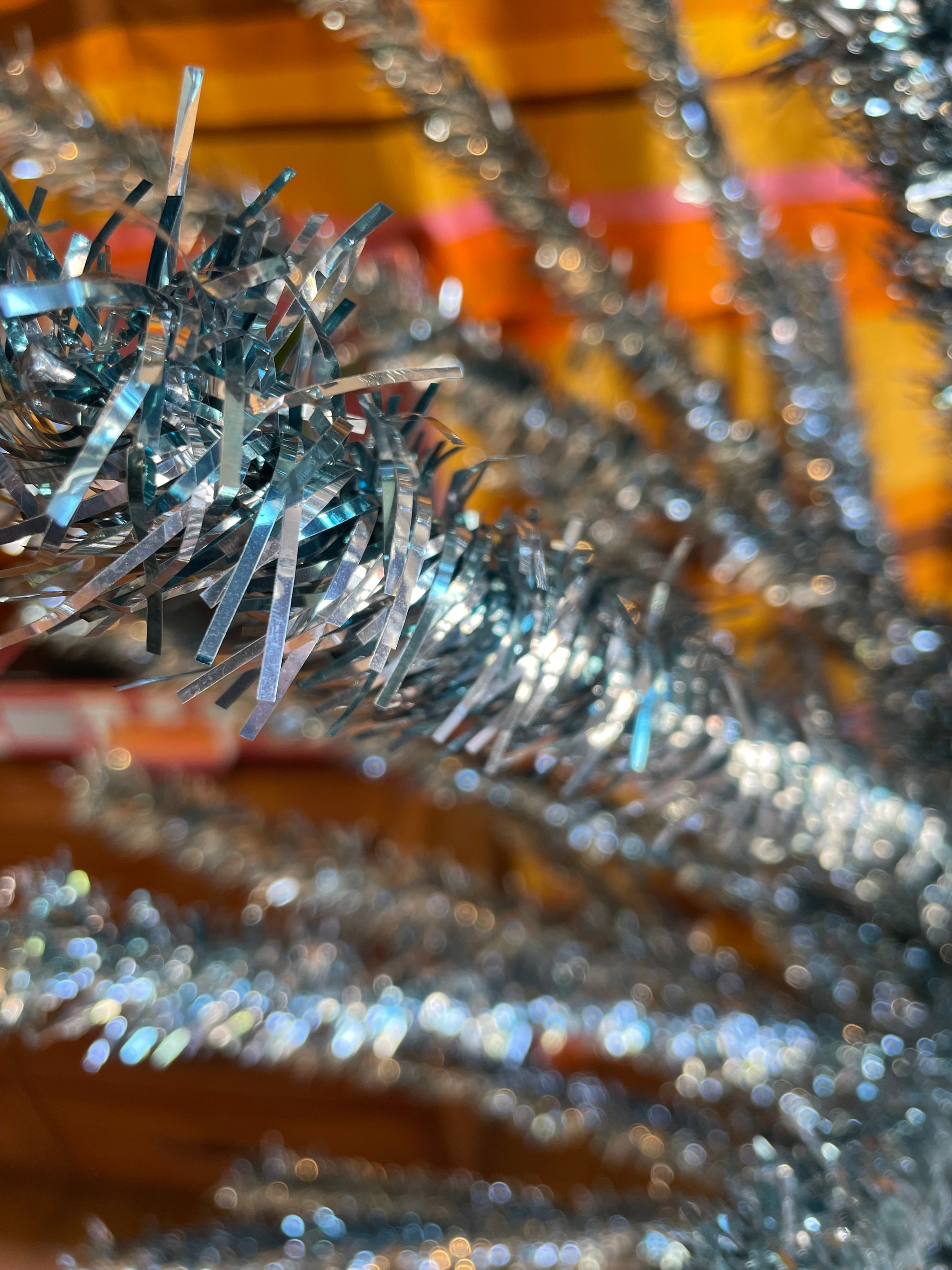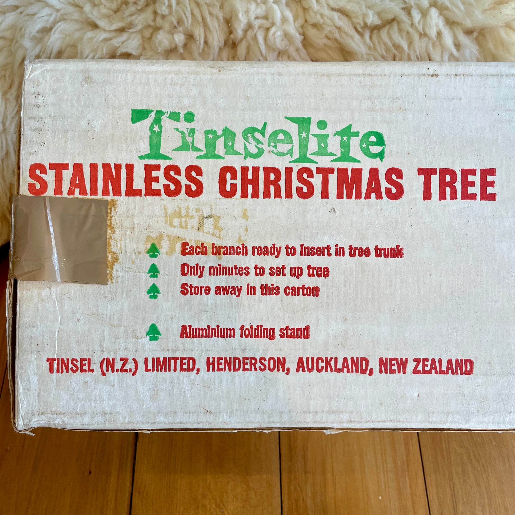 Condition: Overall really lovely vintage condition. Some of the branches may be snug or slightly loose in the wooden holes, but they all fit! Branches can me molded into the positions desired. Some may be slightly crooked, but can be bent back if needed. Tinsel bits to be expected at the bottom of the box. Tree trunk may lean slightly at first, but the center poles can be rotated until it balances. The wooden poles fit together, but you may have to twist the dowels in if it’s a snug fit.