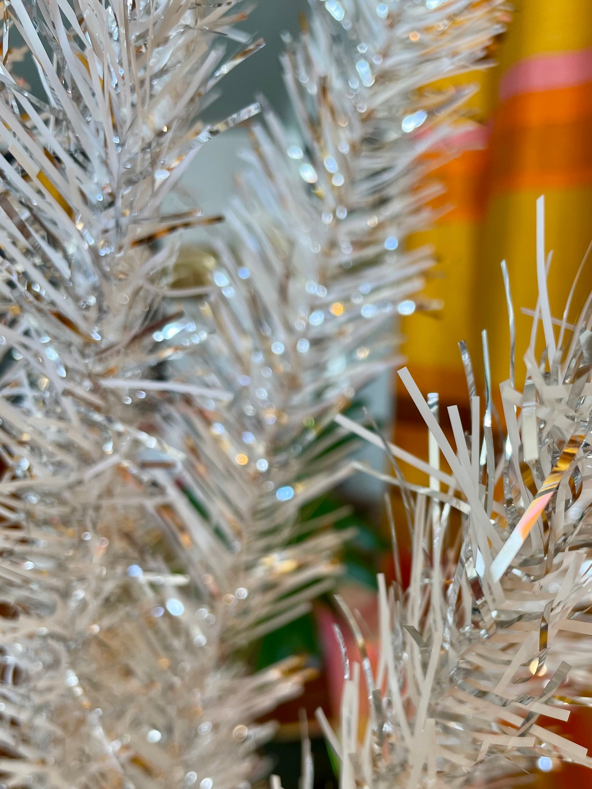 Description: Beautiful vintage Christmas tree in a dazzling silver and white. The tree is from New Zealand, and made by the N.Z. Tinsel Limited Company. The tree is approx. 30” wide x 49” tall