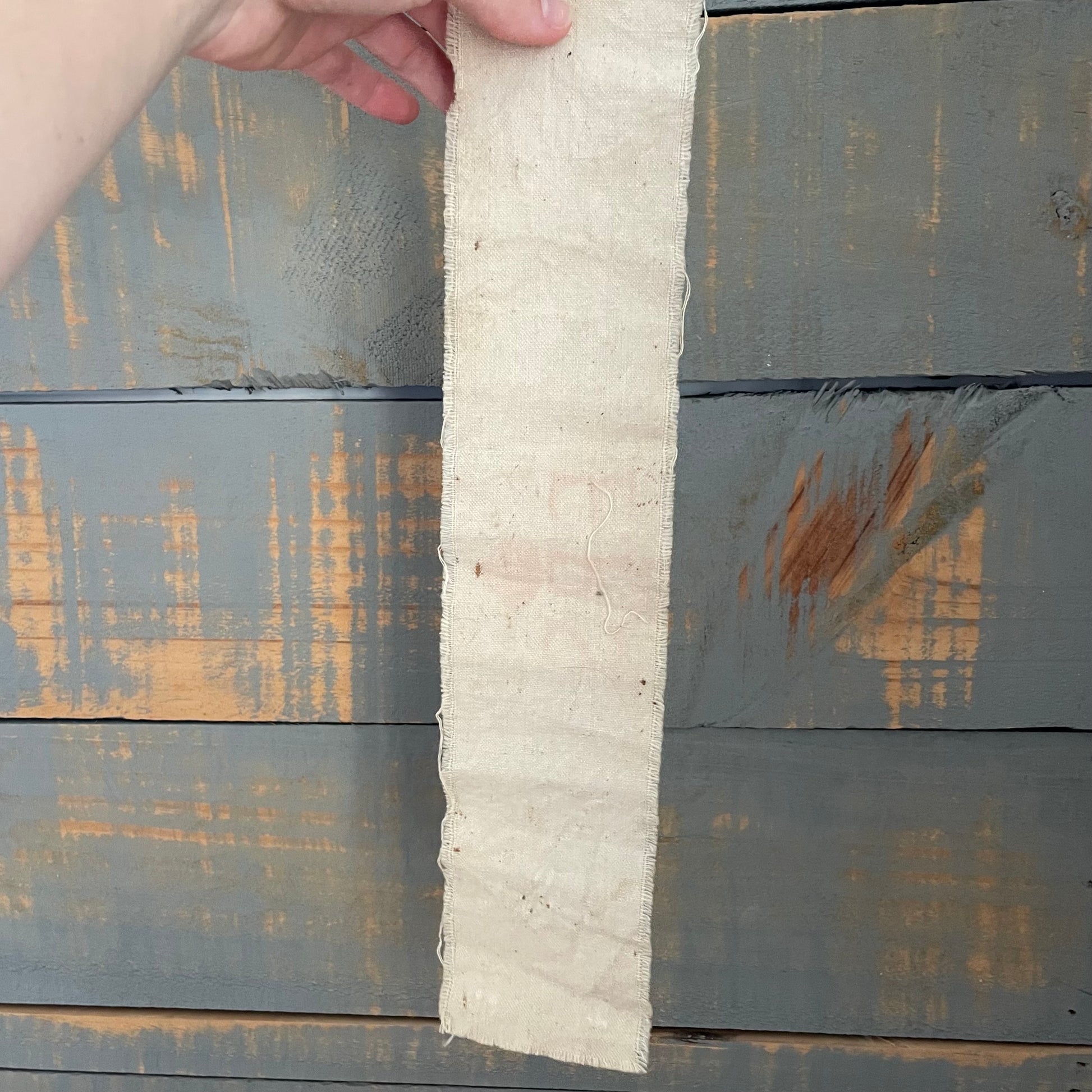 This band is a soft, calico cotton and is in overall really nice condition. Some small holes and age markings. The red lettering and King’s Crown are still a vibrant red.